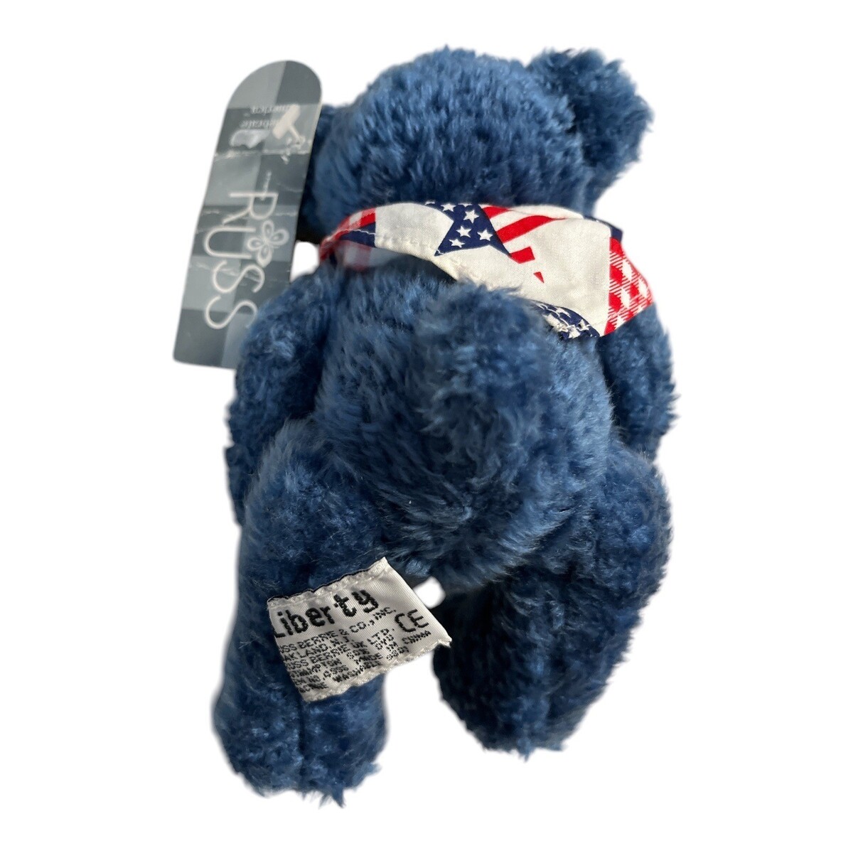 VTG Russ Patriotic Blue Teddy Bear Plush with American Flag Bandana