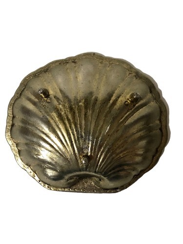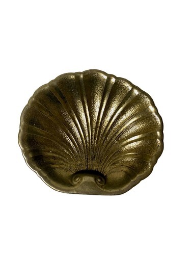 Vintage Solid Brass Footed Sea Shell Ashtray Trinket Soap Dish Nautical Beach