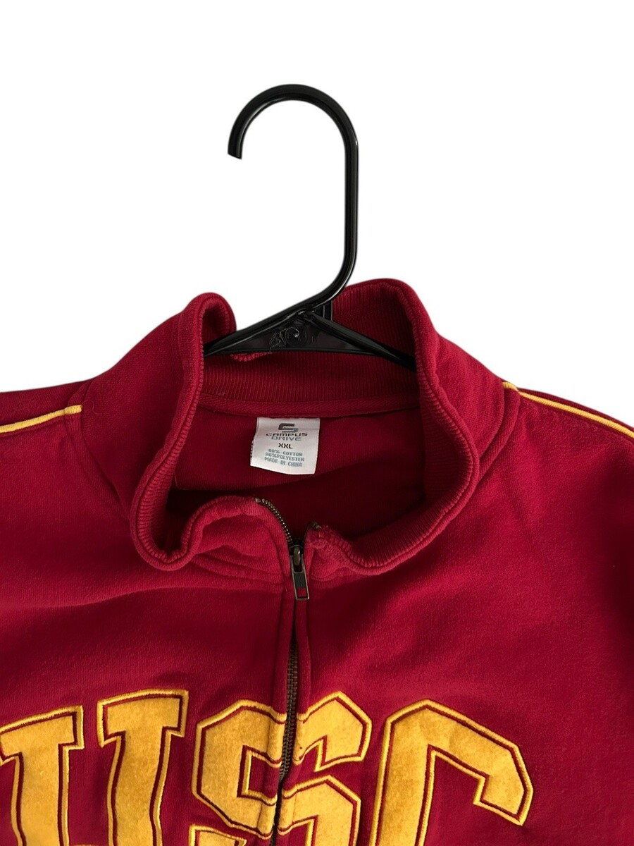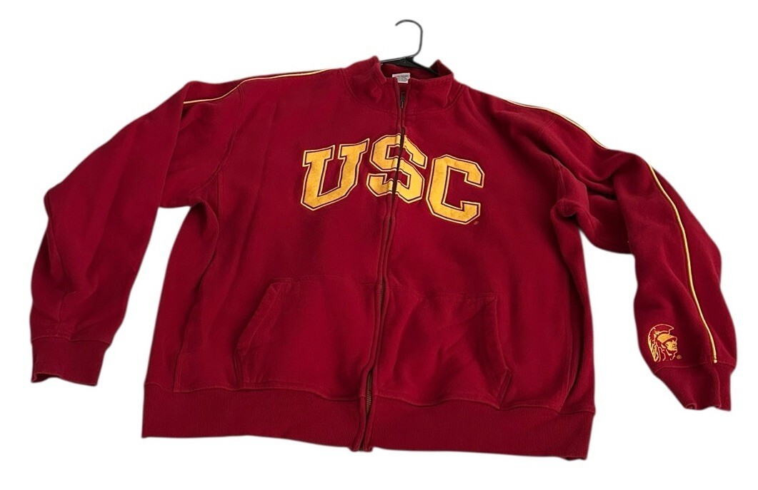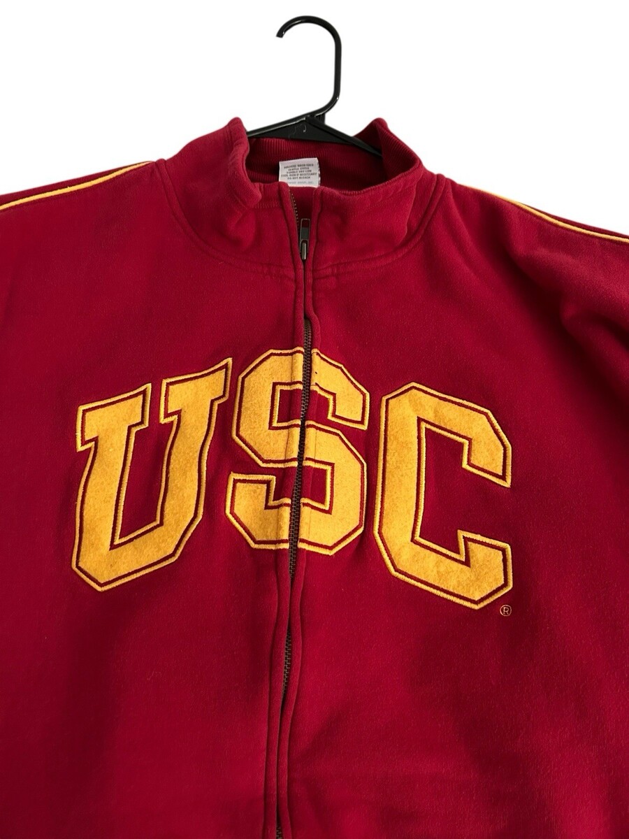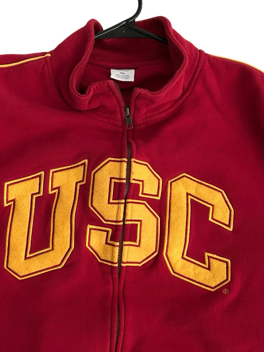 Vtg USC Trojans Fleece Full Zip 90s Jacket 2XL Red Yellow Spell-Out Warm Cozy