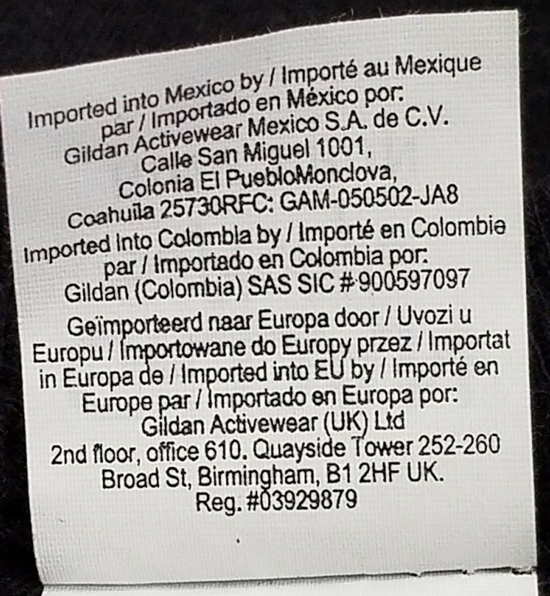 | Garment Care: |