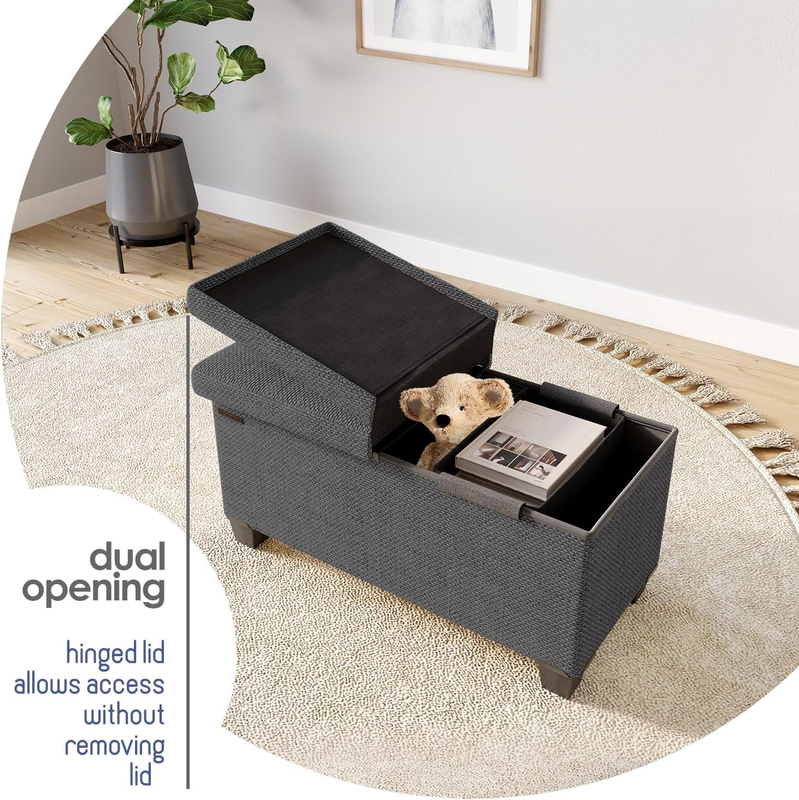 TWO REMOVABLE STORAGE BINS: Keep small, loose items out of sight yet neatly organized with easily accessible storage bins, while the large ottoman space stores bulkier items like throw blankets and pillows.