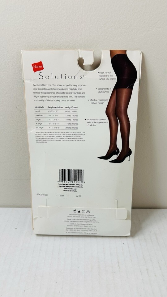 Hanes Premium anti-cellulite sheer support pantyhose in Black, Size Small. Designed for a sleek, comfortable fit with supportive sheer fabric that smooths and enhances the legs. Rare find, perfect for hosiery collectors or daily wear.