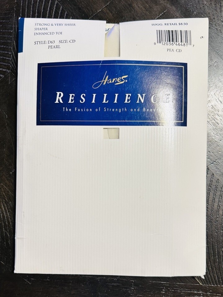 NOS Hanes Resilience pantyhose, Size CD D64 in Pearl color. Strong and very sheer with enhanced toe for durability and comfort. Perfect for everyday wear, office attire, or special occasions. Rare new-old-stock find in excellent condition.