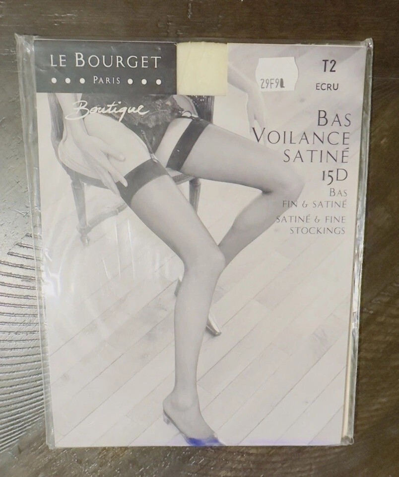 Medium Le Bourget Paris Voilance 15D Satin Stockings T2 USA/D44/46 ECRU Cream M