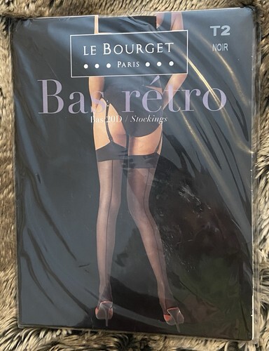 Classic knitted reinforced toe design from Le Bourget Paris. Extremely rare and elegant vintage hosiery in satin finish. Perfect for collectors, lingerie lovers, or to elevate your Halloween costume with a touch of timeless sophistication.