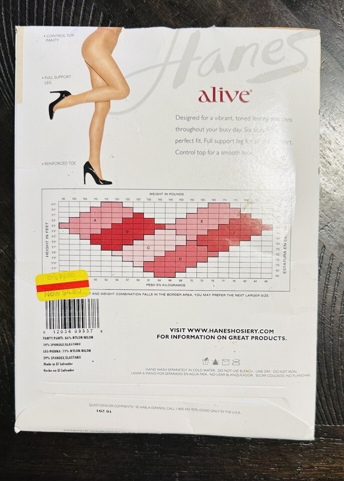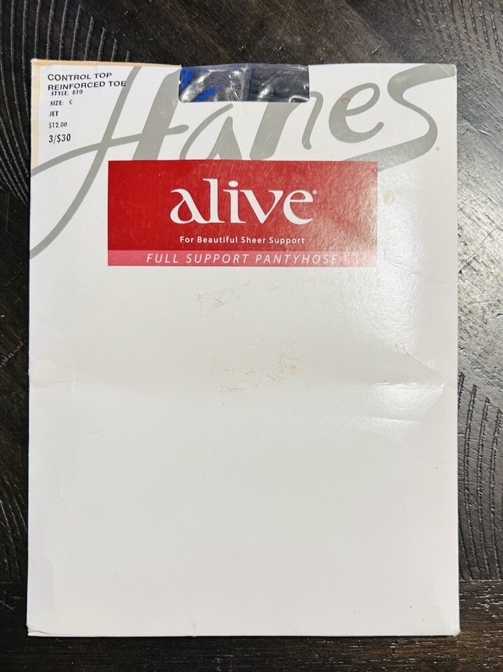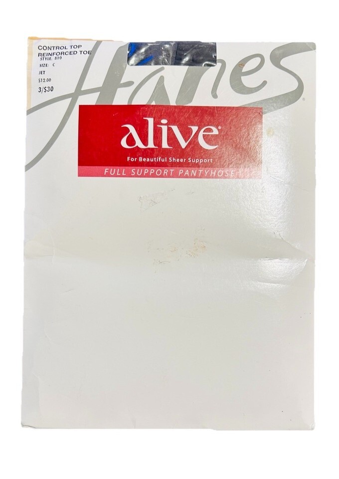 Hanes Alive Full Support pantyhose, Style 810. Control top design in Jet black color. Size C. Provides full support with a comfortable fit, perfect for everyday wear, office attire, or special occasions. Classic and timeless hosiery for women?s wardrobe essentials.