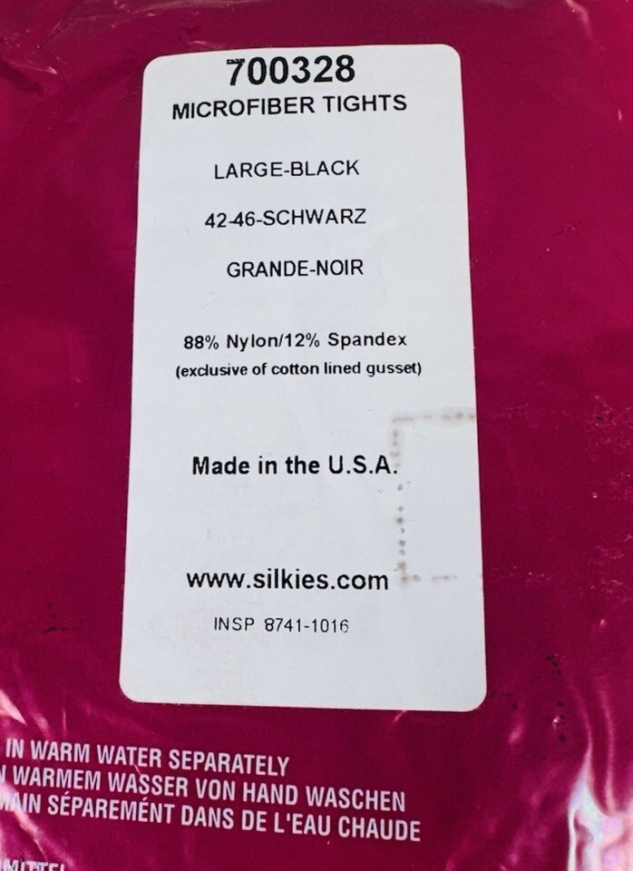 Silkies Microfiber Tights Large Black Vintage Nylon New Size L 42-46 Pantyhose