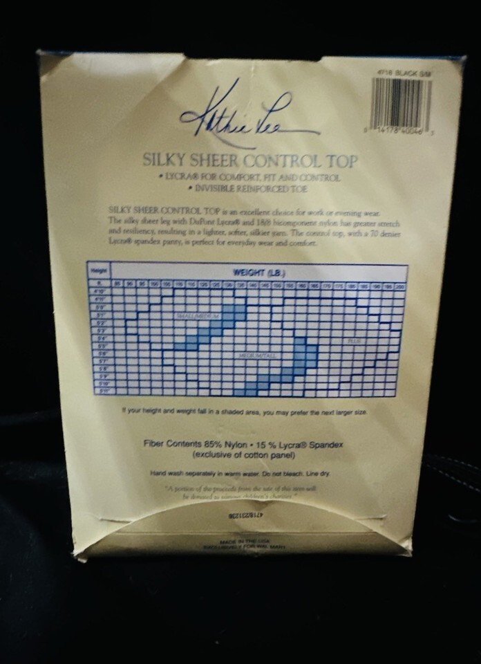 Kathie Lee Silky Sheer Control Top Pantyhose Off Black Small Medium Lycra Leg