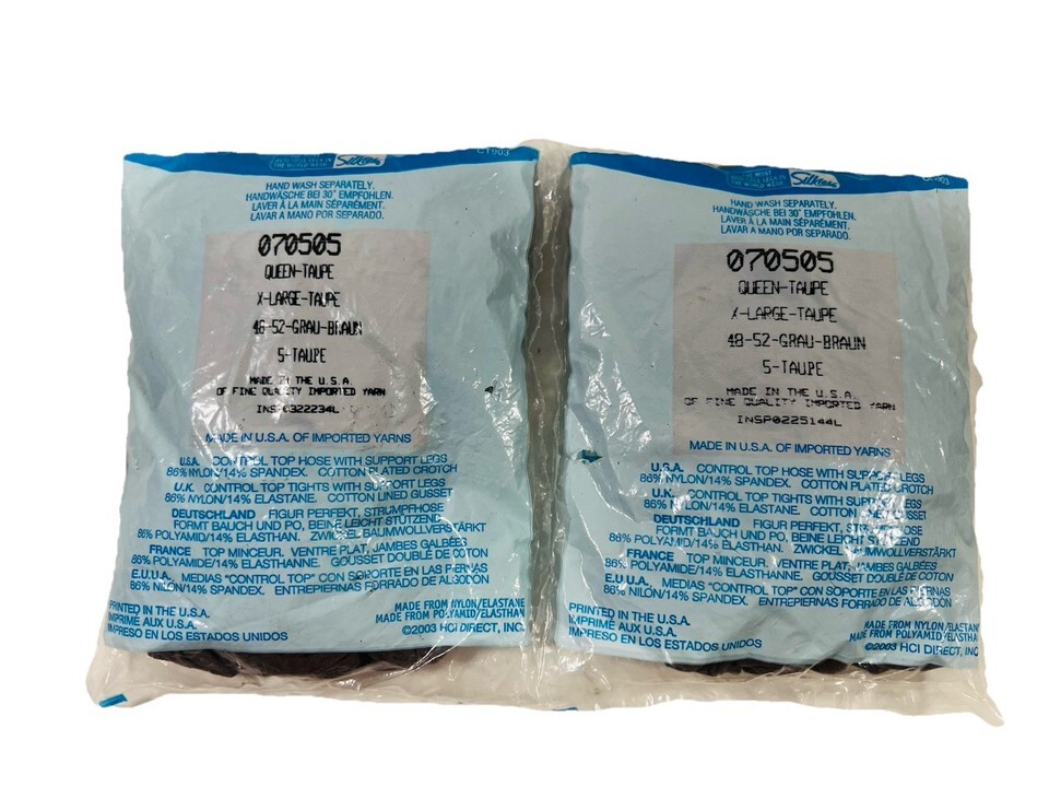 NEW Silkies Control Top Pantyhose Queen XL Taupe Support Legs 070505 Lot of 2 Vintage