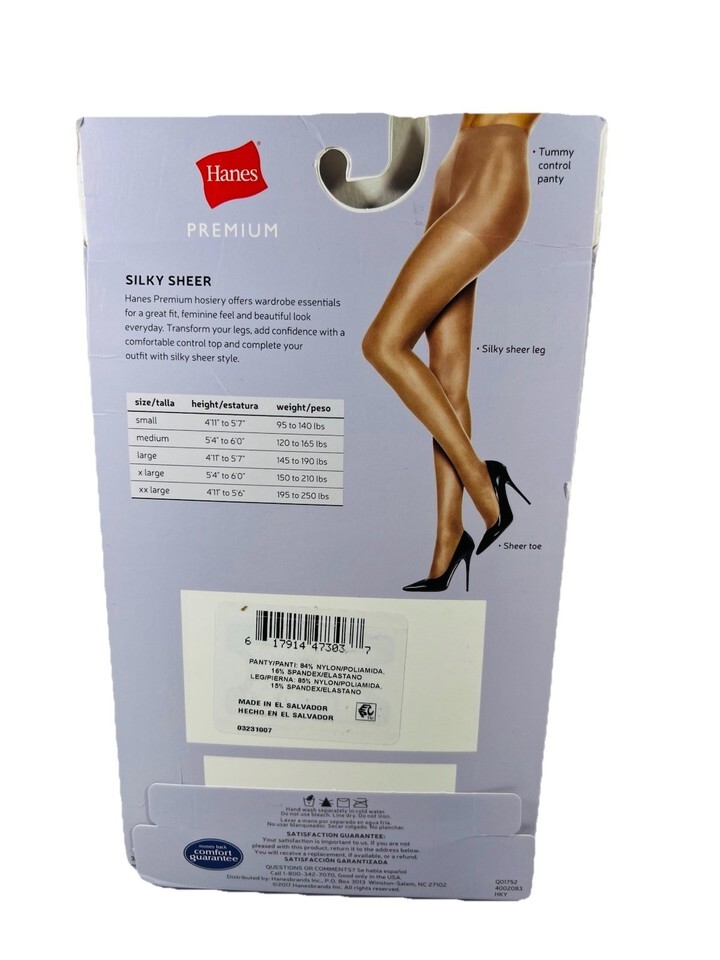 Hanes Silky Sheer Pantyhose Hosiery Silky Sheer Control Top NUDE Size XL New