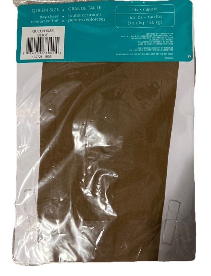Vintage Sophi Queen Size Day Sheer Pantyhose Reinforced Toe Beige 160-190lbs New