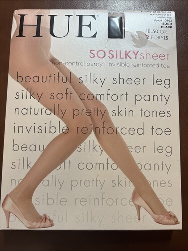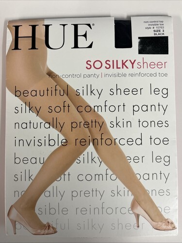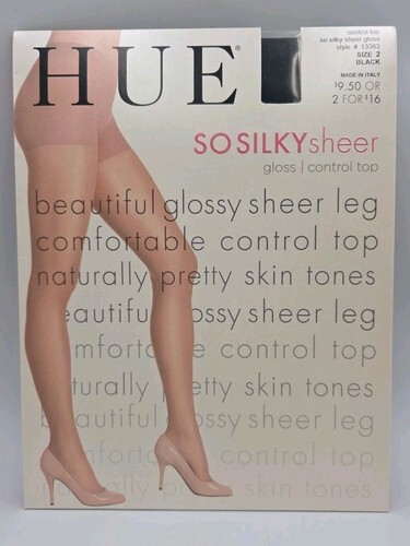 HUE So Silky Sheer control top pantyhose designed to provide a smooth, lightweight feel with a sheer finish. These pantyhose feature a control top for gentle shaping and an invisible toe for a clean look in open or closed footwear, suitable for everyday, professional, and dress wear.