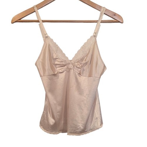 Vintage Vanity Fair Camisole Top Size 42 Beige Lace Trim Adjustable Straps 70s