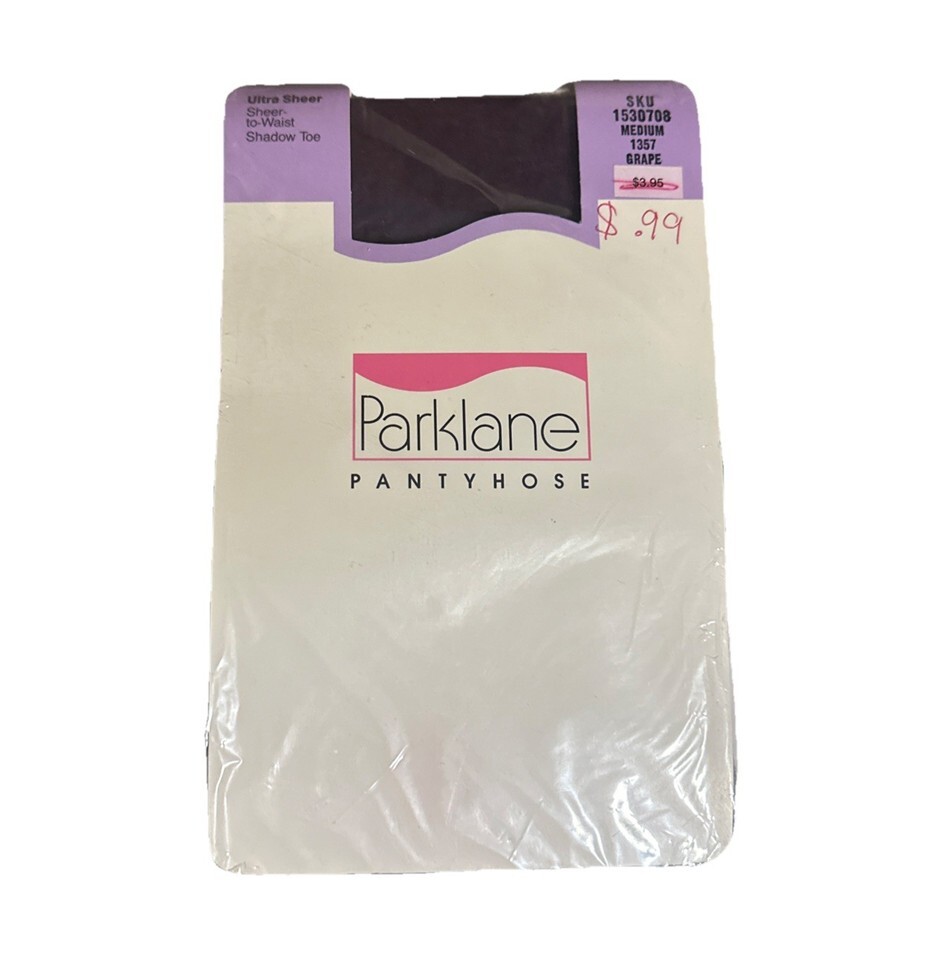Extremely rare 1989. Brand new sealed. These Parklane Ultra Sheer Pantyhose come in Size Medium and the color Grape. Style 1357 with a control top design for comfortable, smooth wear. Perfect for collectors, vintage hosiery enthusiasts, or anyone looking for high-quality sheer pantyhose from the late 1980s.