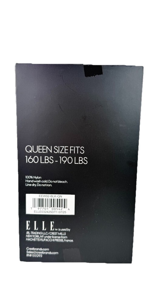 Elle Hosiery Silky Sheer Control Top Size Queen Black 160-190 Lbs Holiday Gifts