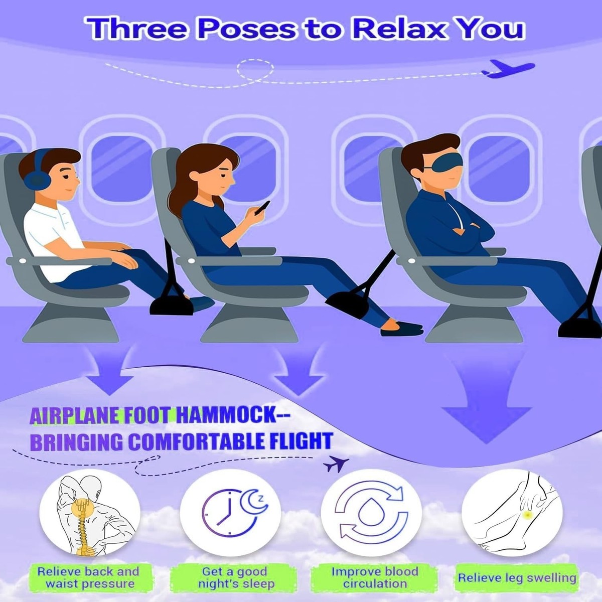 Relief Relaxation ? Say goodbye to swollen feet and fatigue! This foot hammock gently cradles your legs, improving circulation and reducing pressure on your lower back, so you arrive at your destination feeling refreshed.