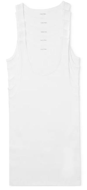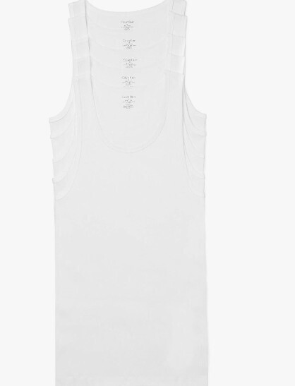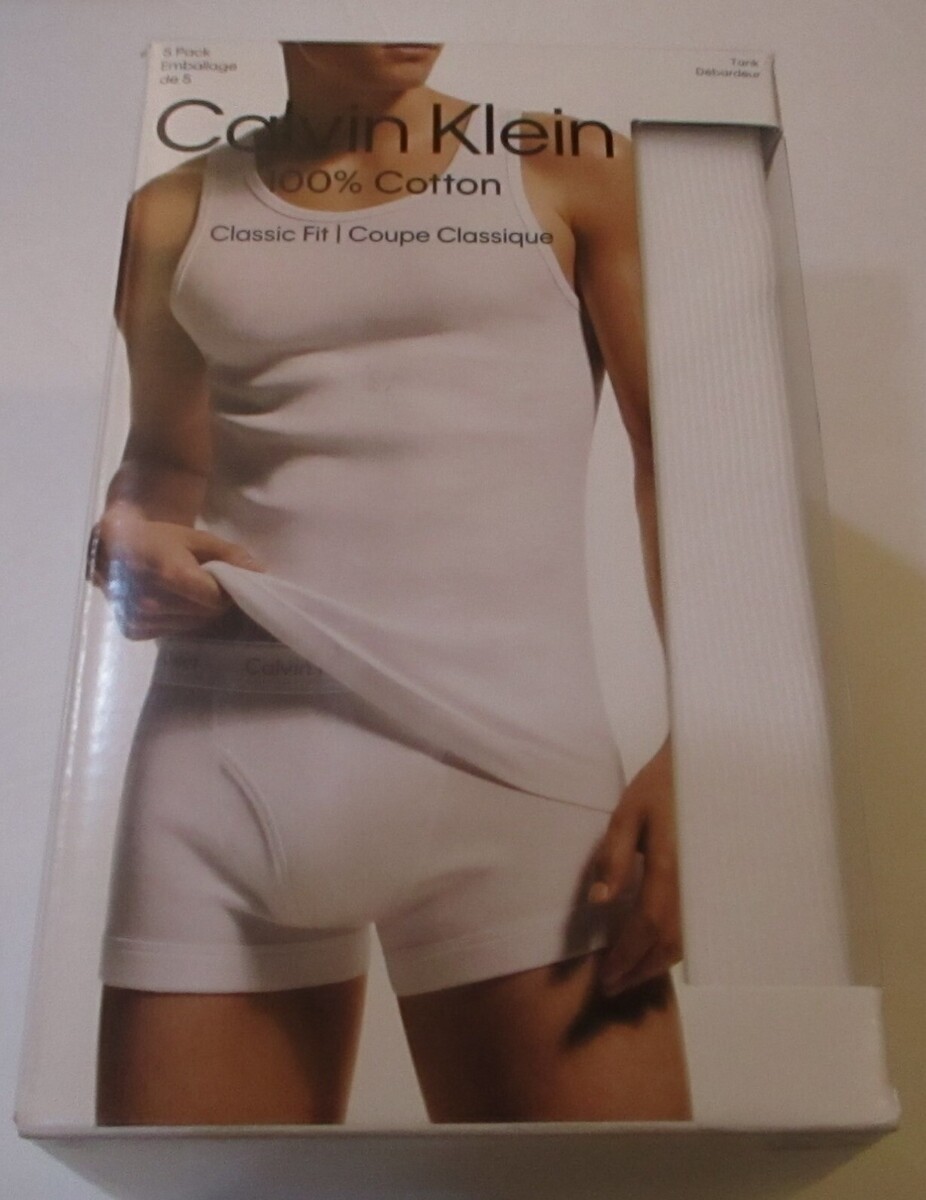 5 New Calvin Klein 100% Cotton White Rib Tank T-Shirts