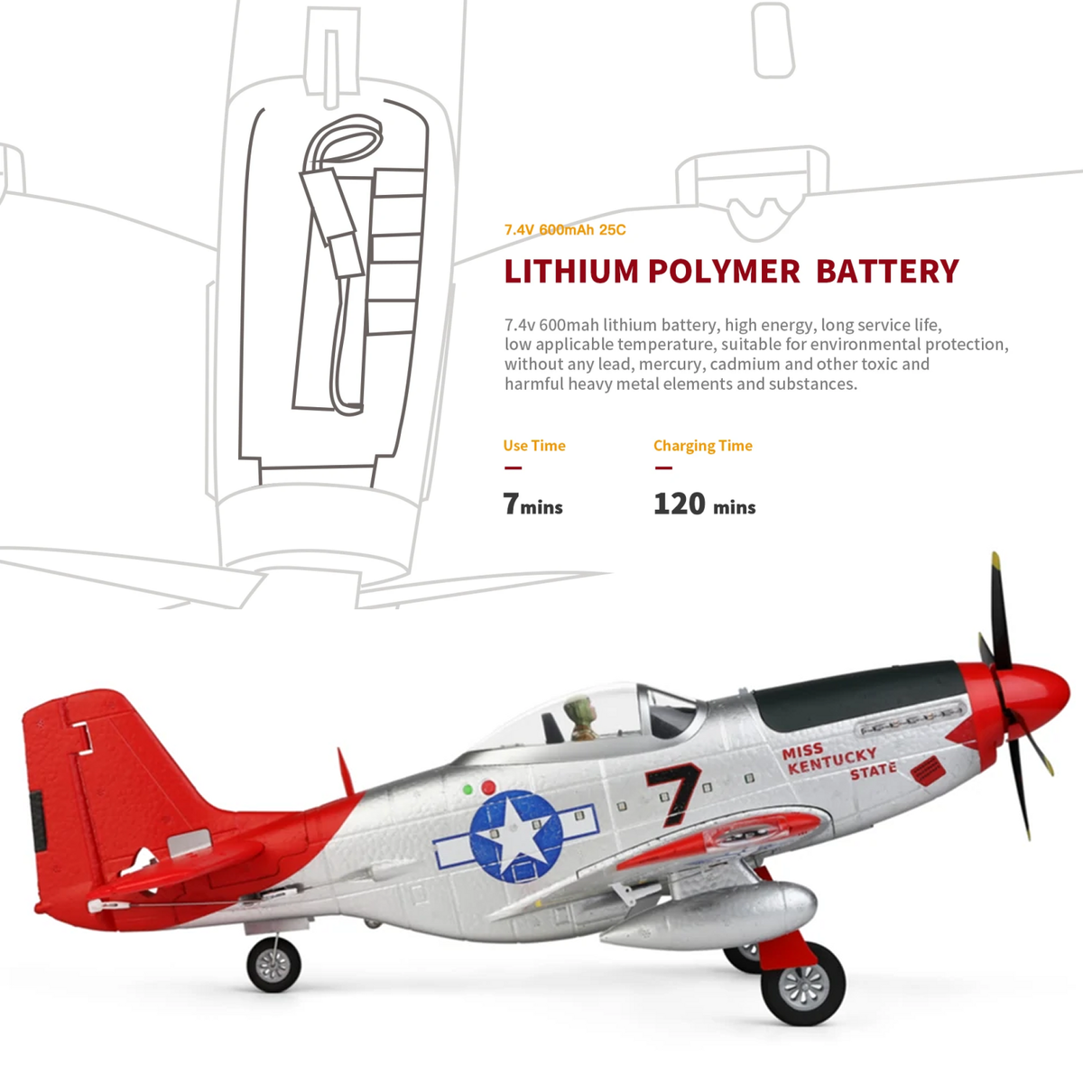 Airplane Battery: 7.4V 600mAh 25C