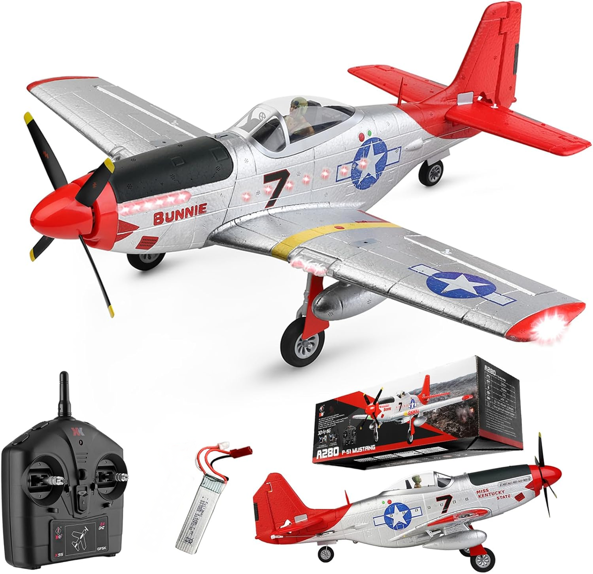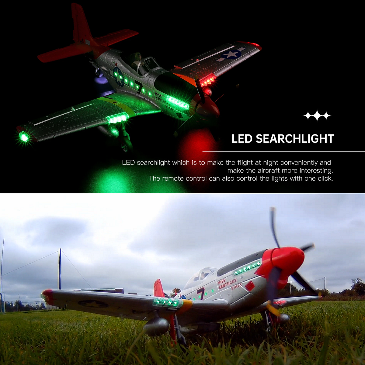RC Airplane P51 Mustang Fighter Warbird Aerobatic Flight with Navigation Lights RTF