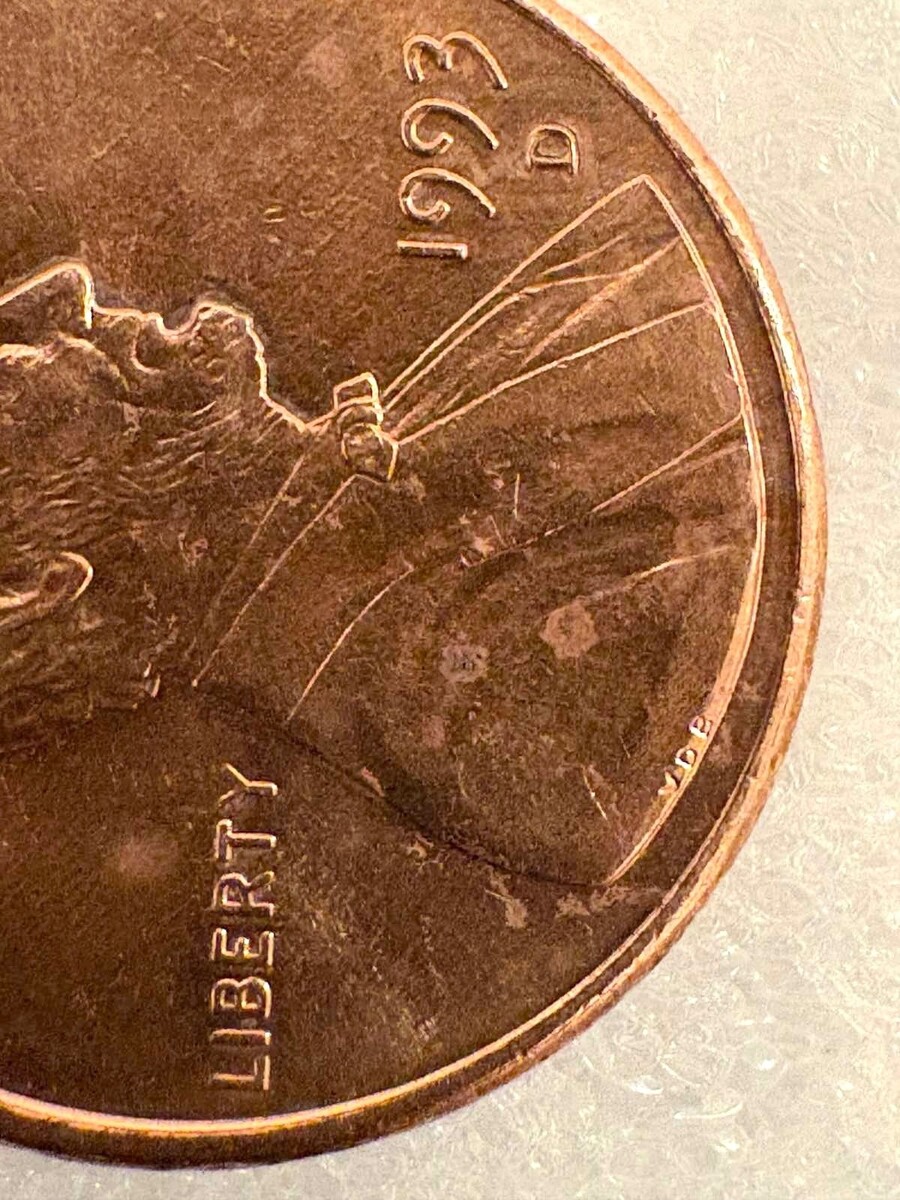 1993-D LINCOLN CENT DDO DDR RAIL RIM OFF-CENTER CLOSE AM