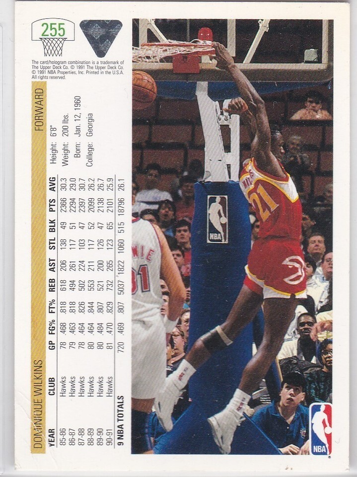 M) 1991-92 Upper Deck NBA Basketball Trading Card Dominique Wilkins #255