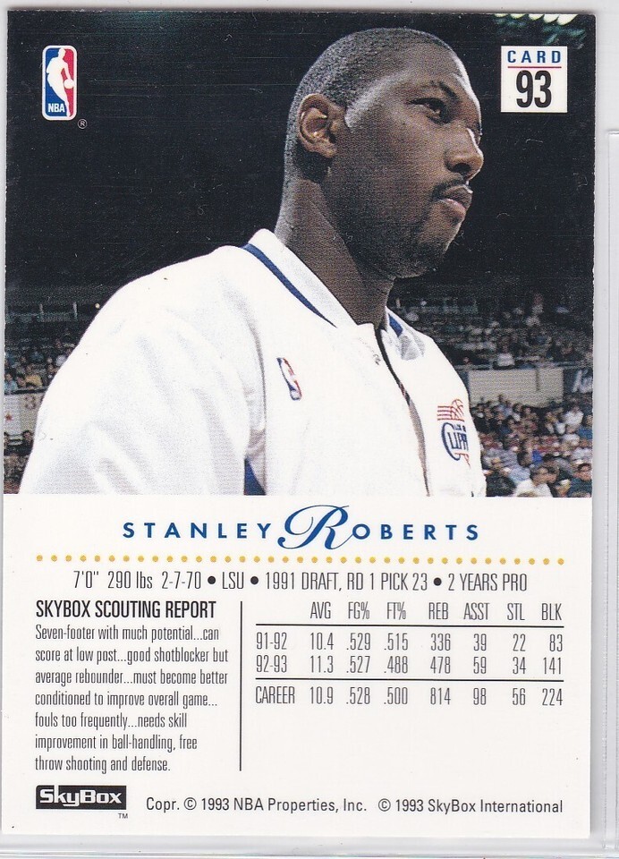 M) 1993-94 Skybox Basketball Trading Card - Stanley Roberts #93