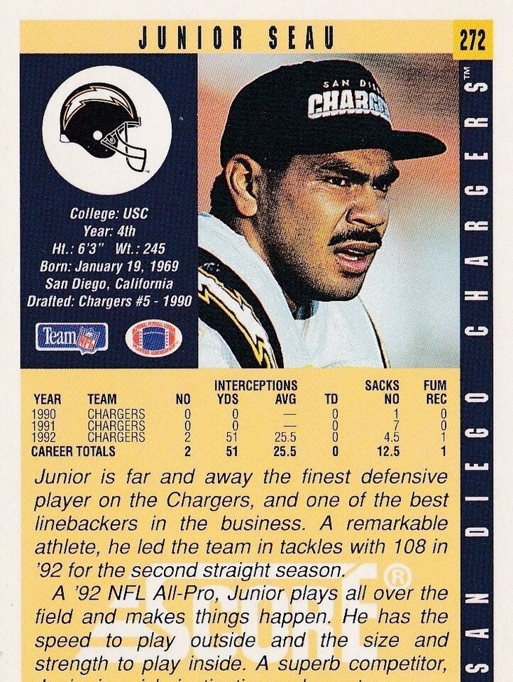 1993 Score Junior Seau San Diego Chargers and 50 similar items