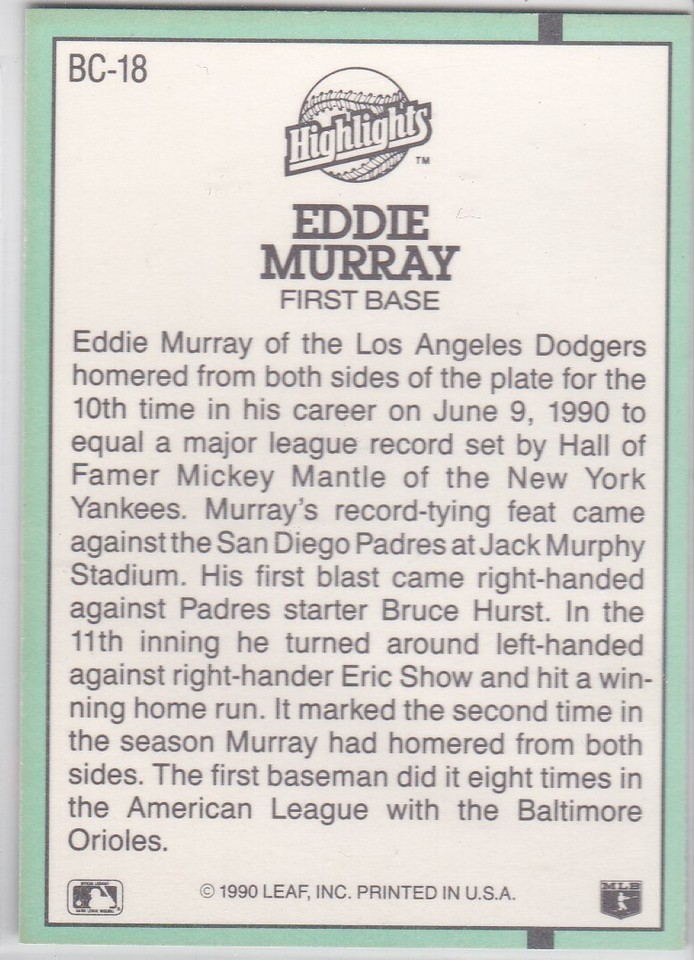 M) 1991 Donruss Baseball Trading Card - Eddie Murray BC18
