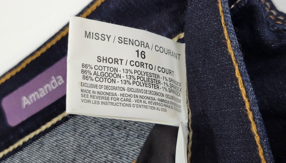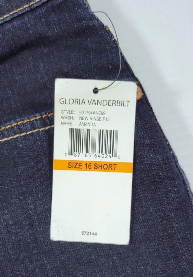 L14) Women's Gloria Vanderbilt Amanda Dark Wash Blue Jeans Pants Size 16 Short