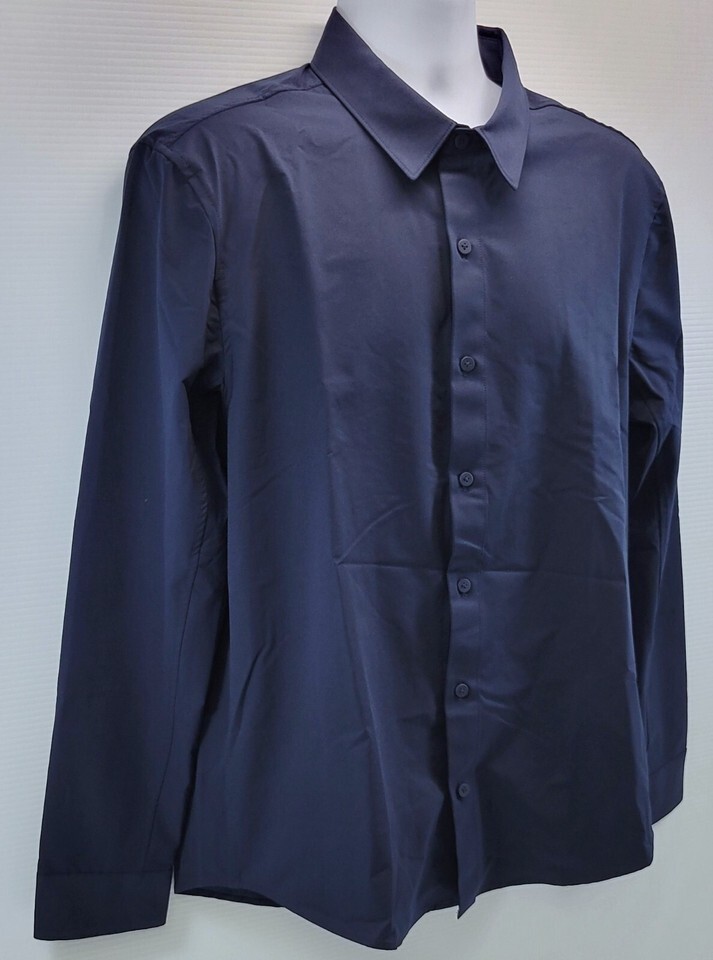 V) True Classic Navy Blue Commuter Long Sleeve Button Up Shirt Men Large
