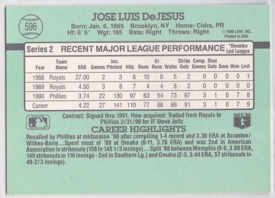M) 1991 Donruss Baseball Trading Card - Jose DeJesus #596