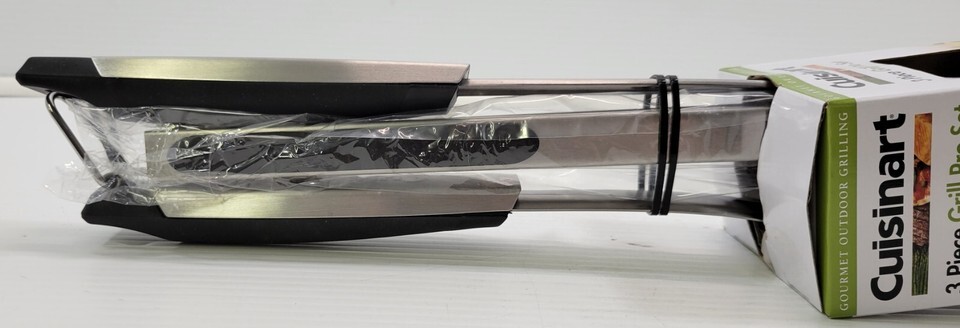 *L) Cuisinart CGS-333 Grill Pro Set 3-Piece Tong Spatula Fork Stainless-Black