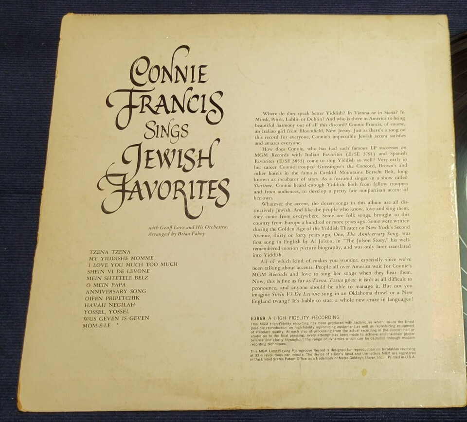 Connie Francis Sings Jewish Favorites - MGM Records - Vinyl Record