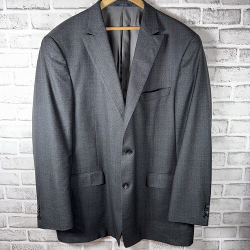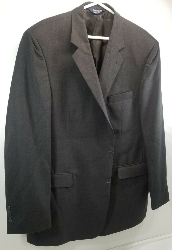 N) Stafford Men's Suit Jacket Dark Gray 48 LG 100% Wool