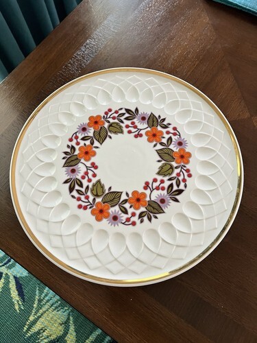Plate is in overall good vintage condition with some signs of age and storage including some fading/marks to gold tone accent.