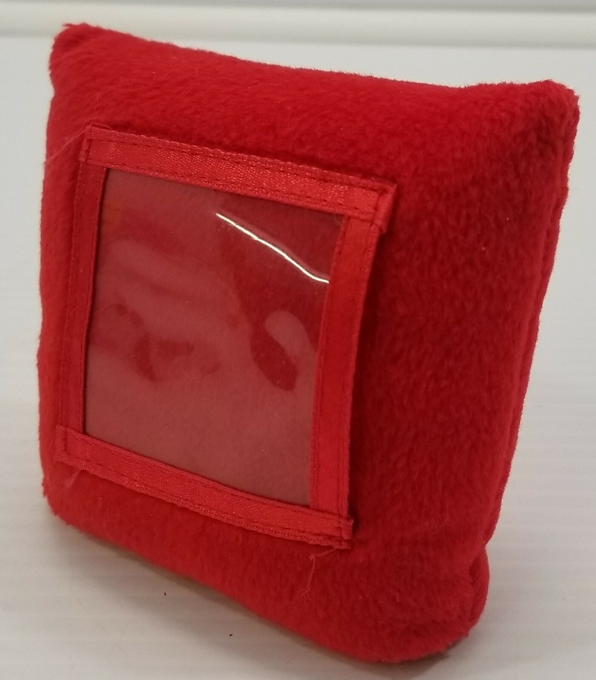 Pillow measures about 4" x 4" and holds a picture of 2" x 2"