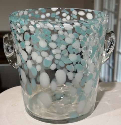 Glass Ice Bucket with Gold Tone Braided Rope Handle