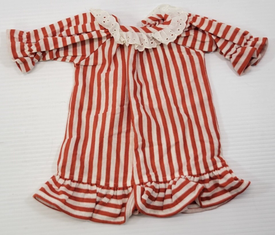 Doll is in vintage played-with condition with some possible signs of use and age along with possible display and storage marks. Hair yarn has some storage and age lint/dust. There is some light staining to the hand/arm.