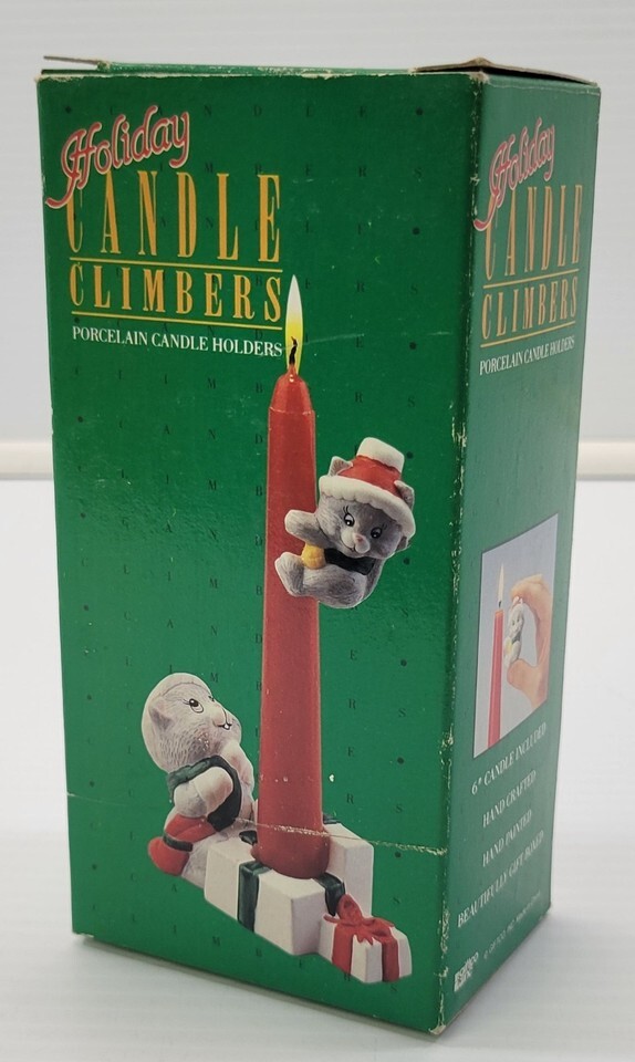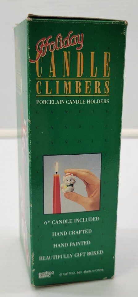 *D1) Vintage Giftco Christmas Holiday Porcelain Candle Holders Climbers Kitten