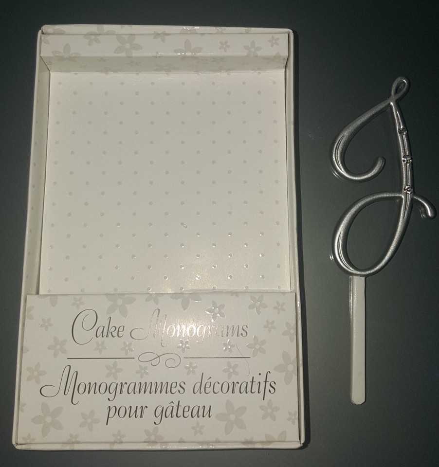 N) Small Rhinestone Silver Monogram Letter “J” Wedding Cake Topper 3" Lillian