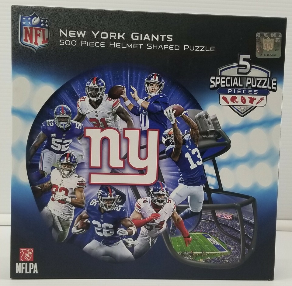 N) New York NFL Football Giants 500 Piece Helmet Shaped Puzzle Masterpieces