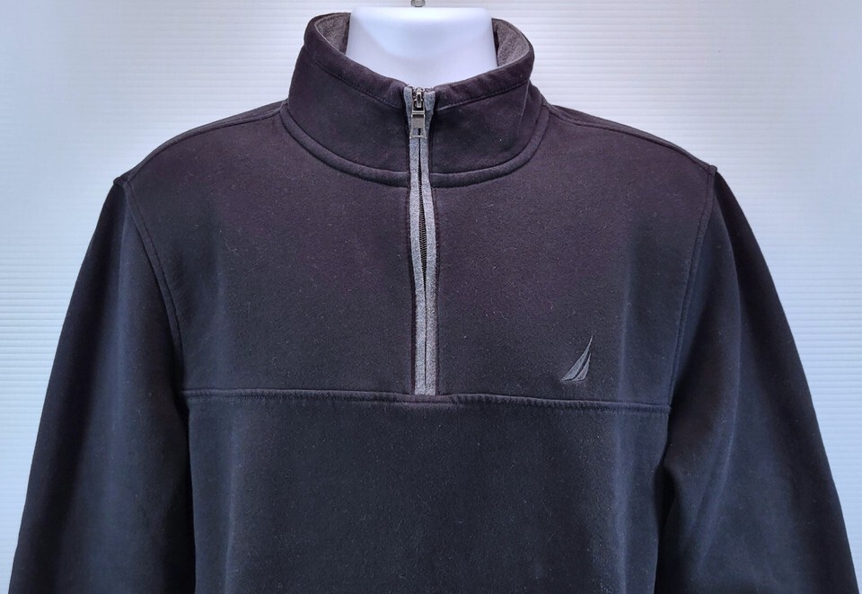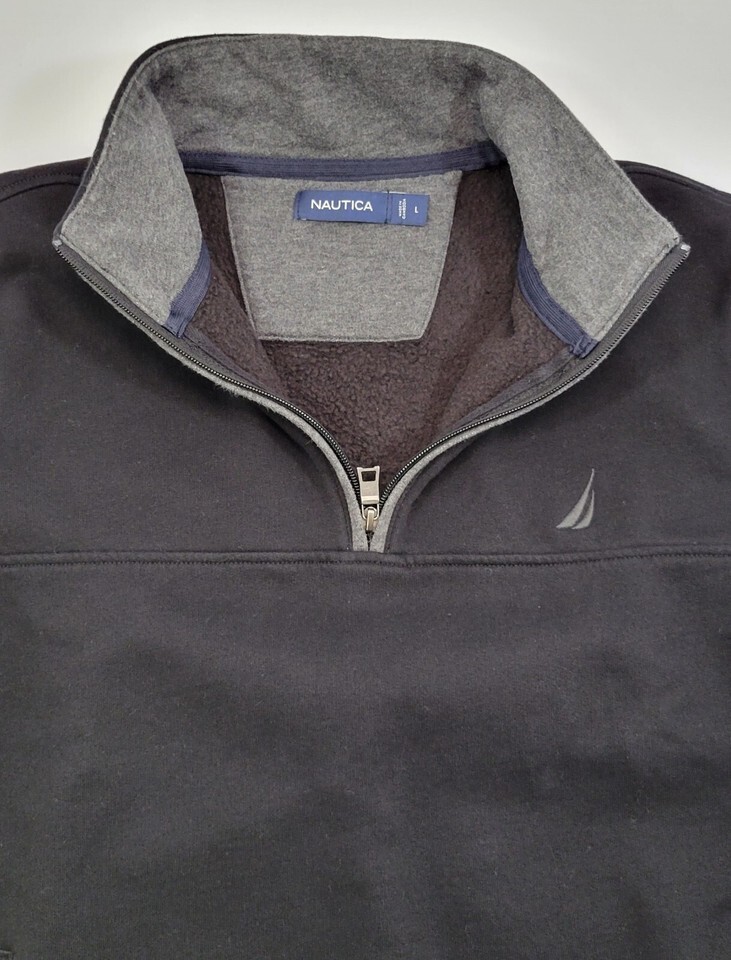 D) Nautica Men Quarter-Zip Pullover Fleece Sweatshirt Black Large