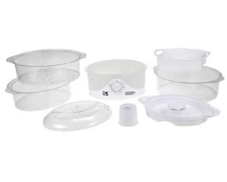 Kalorik Food Steamer 3-Tier Food Basket Rice Cooking Tray 9 Quart White DG 33761