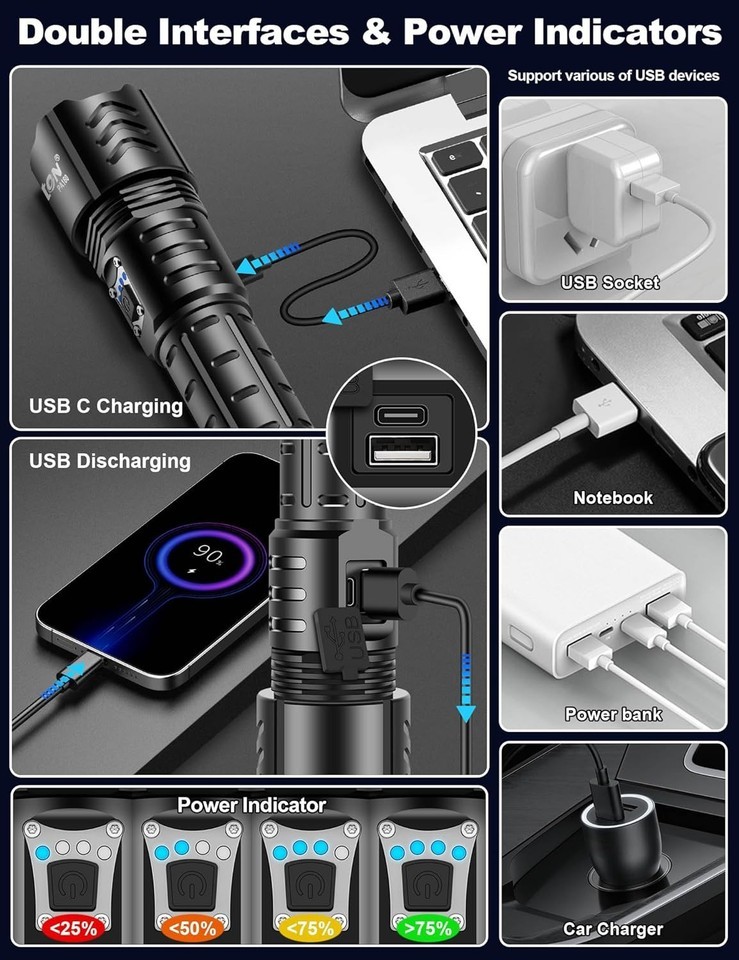 Power - Super Bright 10000 Lumens, Long Range -Up to 3280 ft,