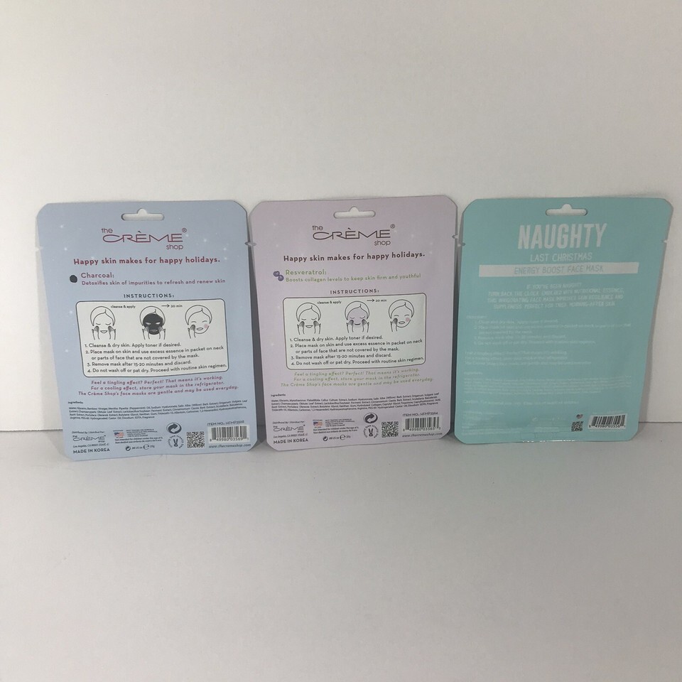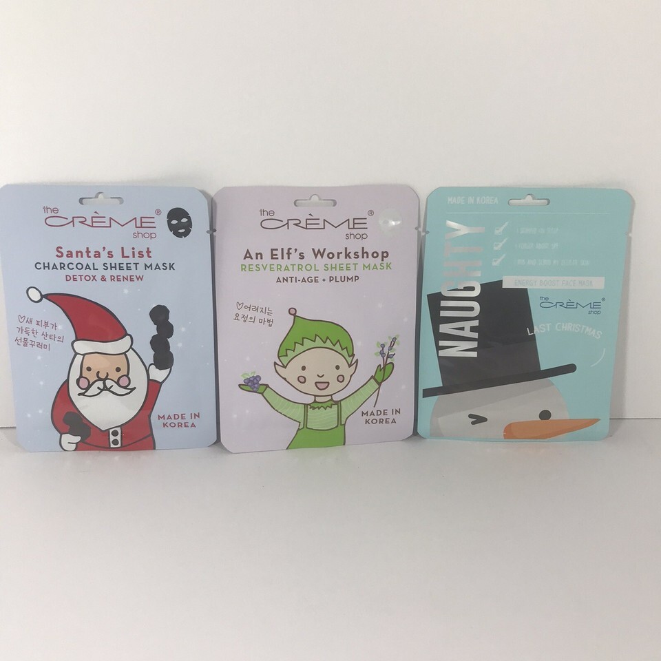 The Creme Shop Christmas Face Mask Assortment Stocking Stuffer Cruelty Free. Condition is New. 3 sealed pouches of 3 different masks(See all photos for names, ingredients).