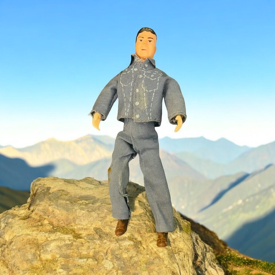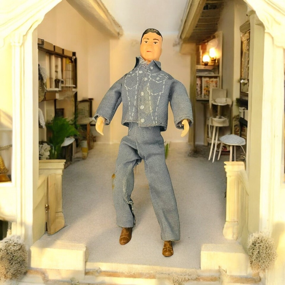 Vtg 1970’s Dollhouse Husband Doll Bendable Blue Denim Outfit