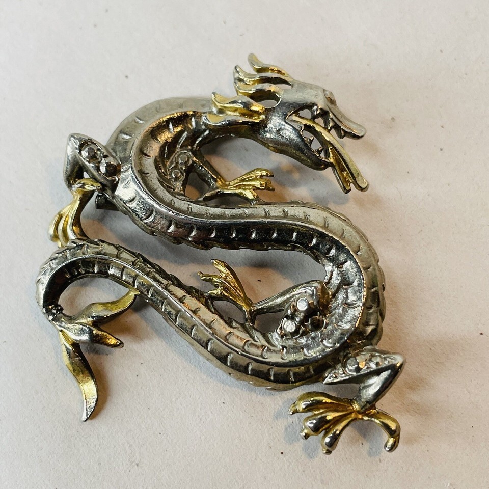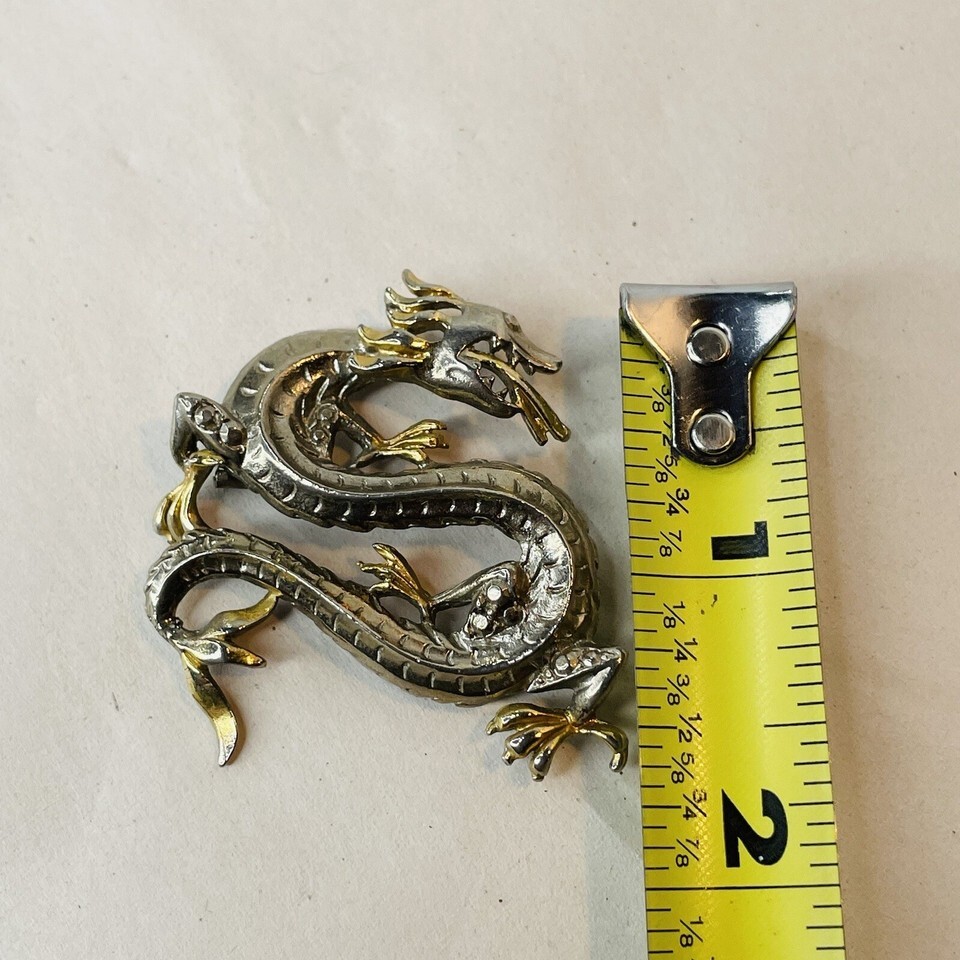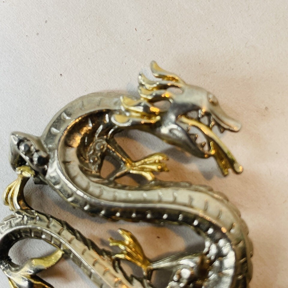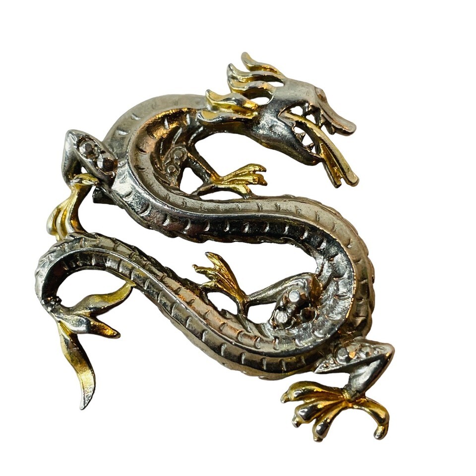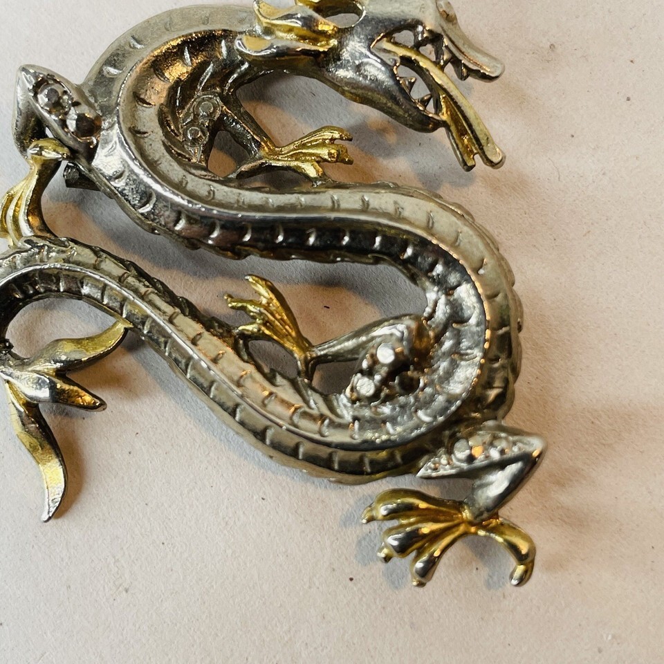 Two Toned Silver Gold Winding Dragon Serpent Brooch Pin Vin Mythology Fantasy. Vintage preowned condition with minimal signs of wear. See all photos.