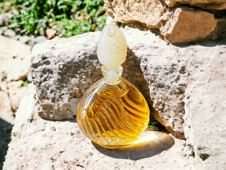 This vintage creation from Ted Lapidus is a stunning 4 inch high mini glass perfume bottle, made in France. The intricate design and attention to detail make this bottle a perfect piece for any perfume collection. While it does not come with a box, the bottle itself is in good condition.