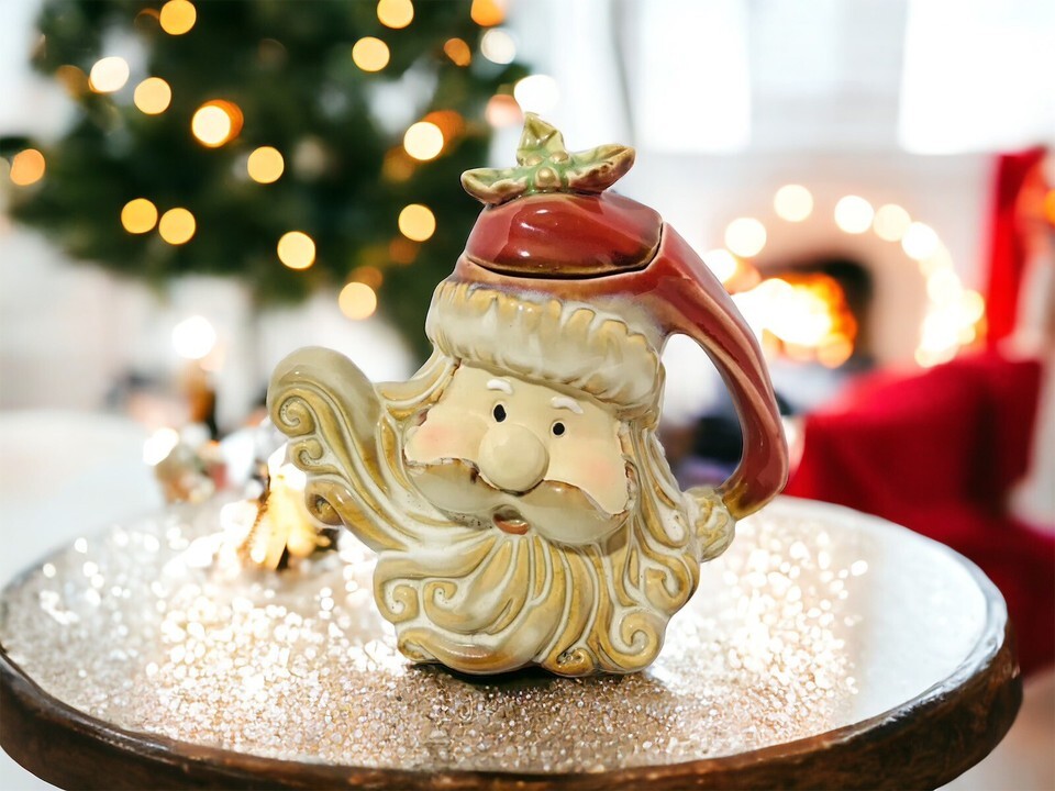 Santa Claus Head Christmas Pottery Ceramic Decorative Teapot. Condition is Used. Very good condition with no chips, cracks or flaws. (See all photos for Condition and measurements).