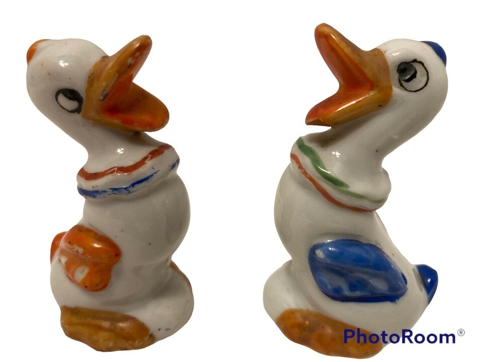 Vintage Anthropomorphic Happy Ducks W/Collars Circus Salt & Pepper Shakers